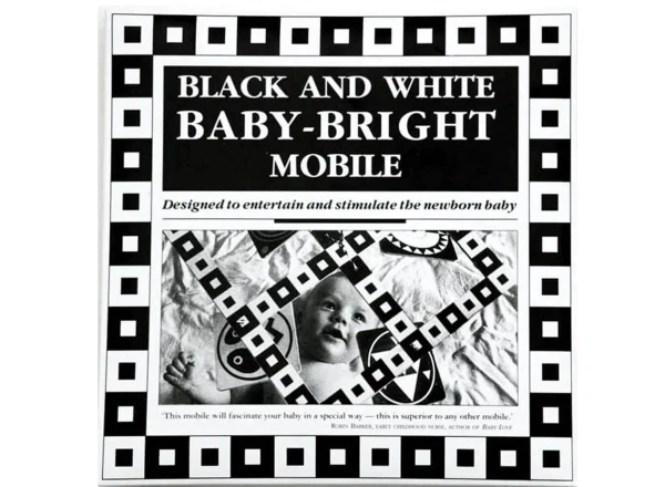 Cardboard hanging baby mobile with black and white designs