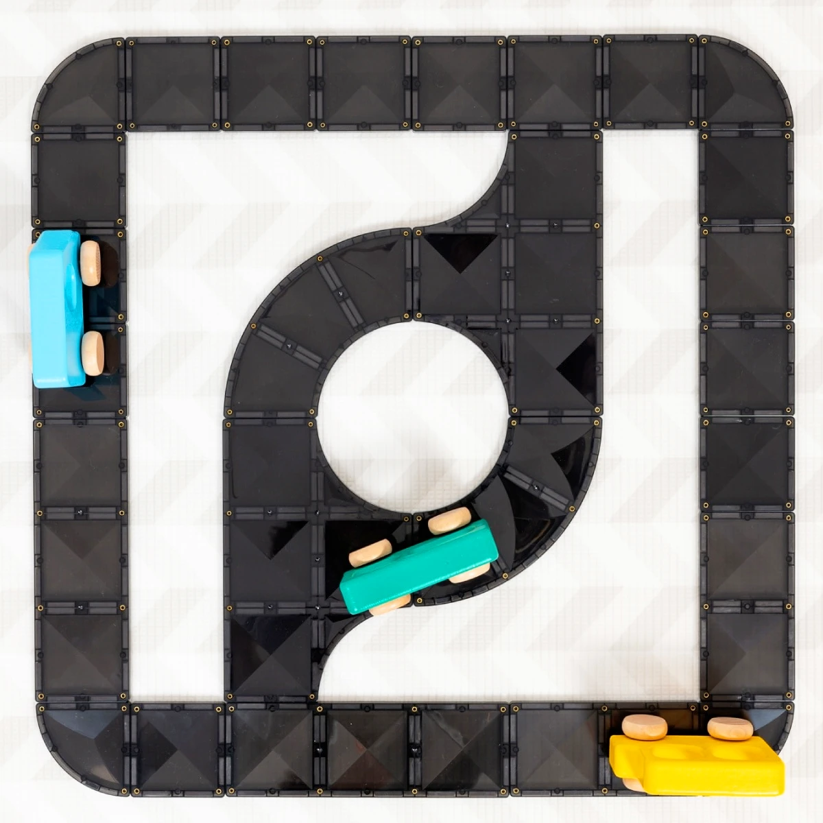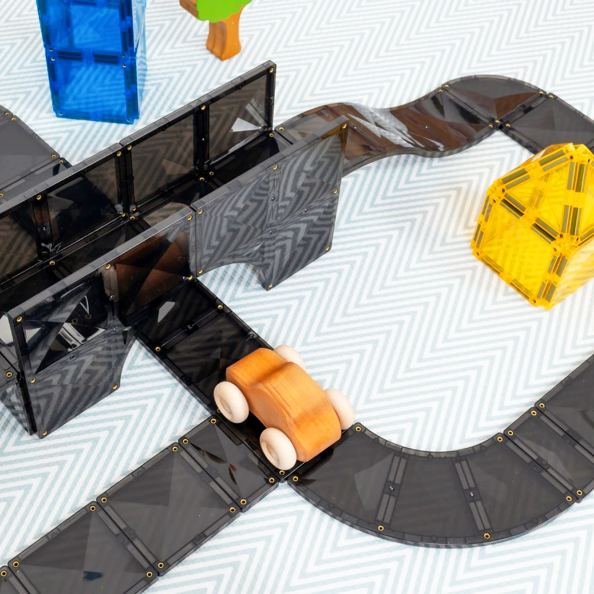 The 48 piece Creative Roads Pack features an exciting range of magnetic tile shapes, including arches, intersections, quarter circles, plus long and short ramps! The sleek black shade tile is perfect for building road-inspired designs. With strong magnets and multiple connection points, this pack invites you to discover endless play possibilities.