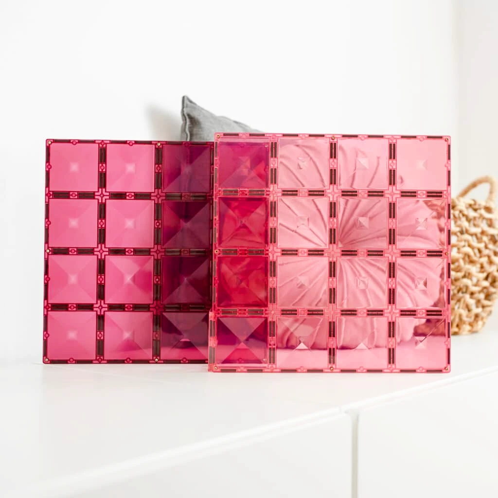 Use these supportive bases to make taller towers, sturdier castles and dazzling doll houses. Inspire symbolic play as you create tables, chairs, tents and market stalls. Develop fine motor skills by creating mazes and coin drops. Unleash imaginations through small world play as the Pink and Berry Base Plates become a field of flowers, tables for a tea party or a magical magician’s pool.