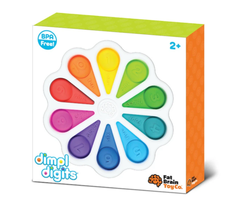 Little fingers can’t resist these beautiful buttons! Learn to count from 1 to 10 with this fun and captivating toy from Fat Brain Toys. Built safely into a sturdy ABS plastic frame are 10 vibrant coloured silicone bubbles. On one side of the toy each silicone button has a number from 1-10 embossed and it’s matching word in English. The other side you will find the words written in Spanish, plus dots to feel and count.