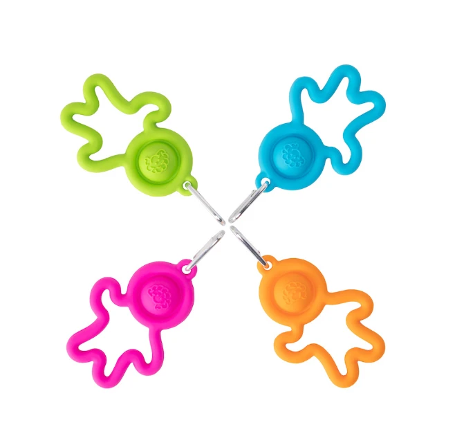 - Silicone, buddy-shaped keychain with dimbl bubble to poke and pop