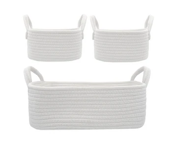 Perfect for under the change table or in the bathroom, our 100% cotton rope 3pc storage set will keep everything organised for change and bath time. Our gorgeous storage sets are hand washable and line dry