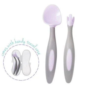 The unique deep scoop spoon shape and angled handles encourages correct hand to mouth positioning, and helps to contain food within the spoon as bubs practices bringing it to his/her mouth, which means more food makes it to the mouth and less mess!