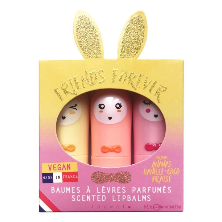 This trio is the softness order par excellence, it acts as a blanket, = well-being and comfort guaranteed. Enriched with shea butter and macadamia oil, these balms effectively nourish, repair and protect the lips. The icing on the rabbit: the formula is vegan, cruelty free, without parabens or allergens. Made in France with love. Suitable for children from 3 years old.