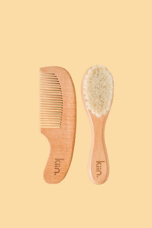 The Kiin Baby Goat Wool Baby Hair Brush & Comb Set is ideal for gently grooming soft & delicate baby hair.