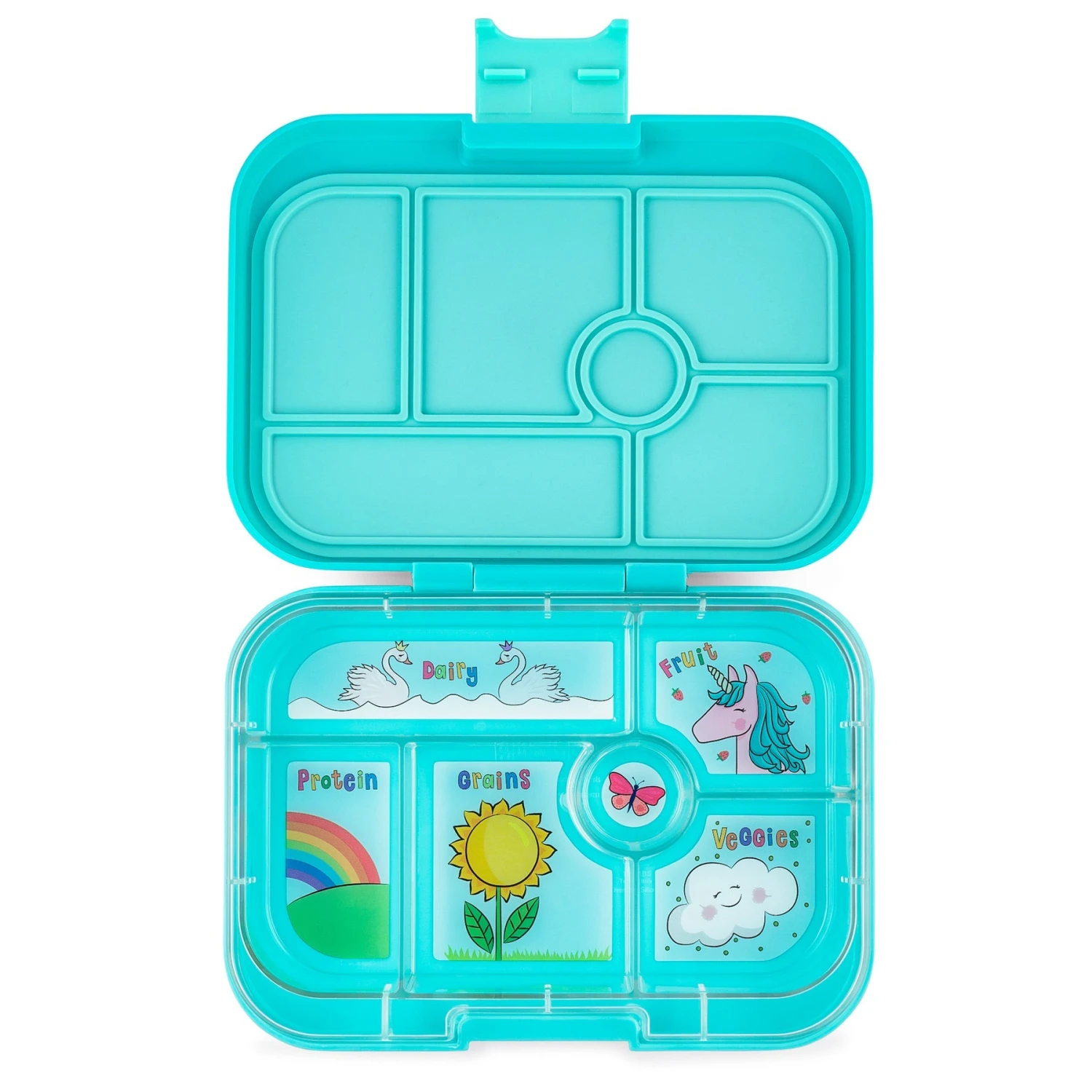 Our original leakproof design six compartment Yumbox is specifically designed for little kids that like variety and might be tired of same old sandwich in their packed lunch. Pack a healthy mix of their favorite foods and make packed lunch something to look forward to. Misty Aqua Yumbox Original with the lovely Unicorn tray will make any packed lunch look amazing.