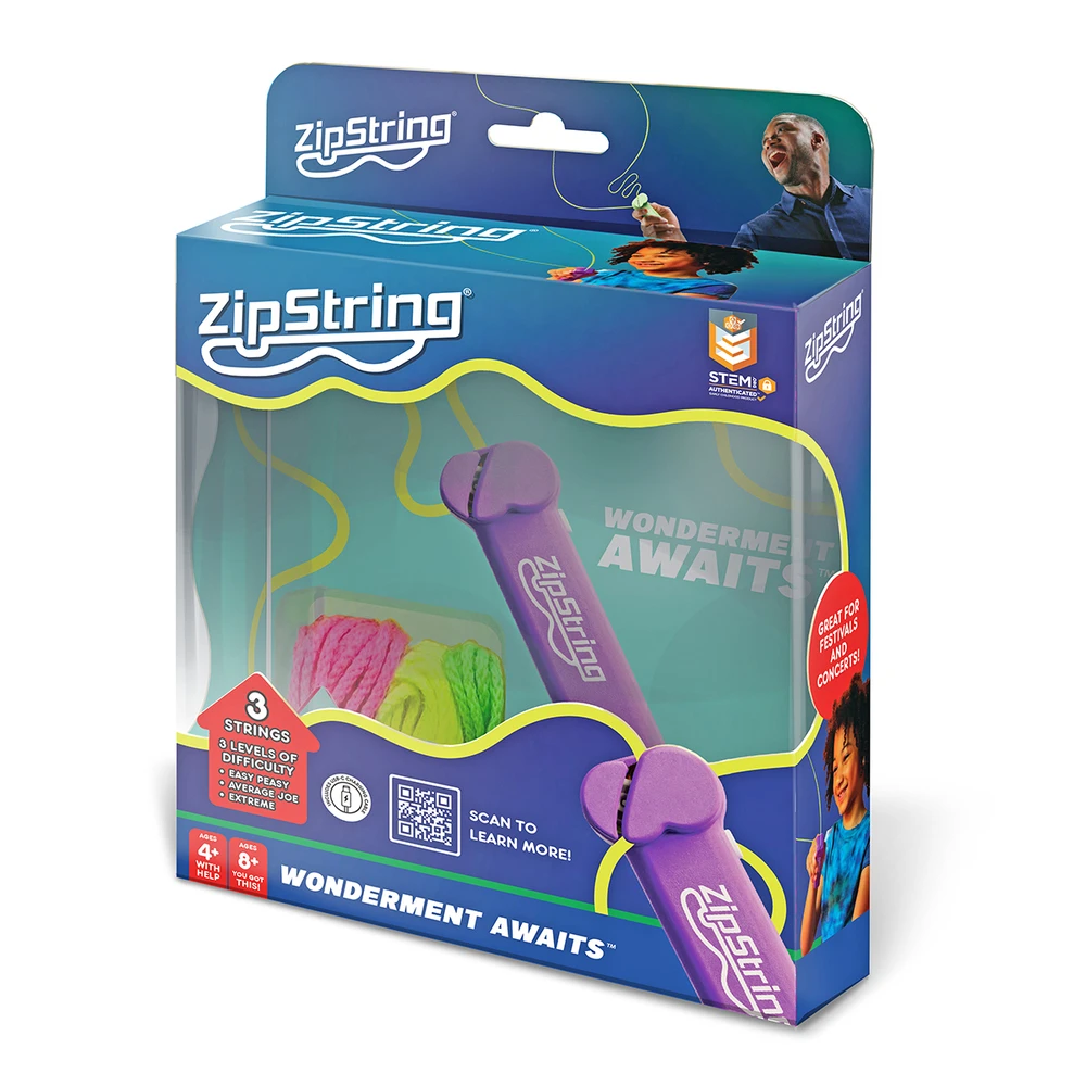 ZipString is a captivating toy that defies gravity, floating a seemingly ordinary loop of string in mid-air. It masterfully balances the forces of gravity, lift, tension, and drag, creating an enchanting flight experience for the string. Every movement made by a Zipster (a ZipString user) is mirrored by the string, making it a truly interactive and magical playtime companion.